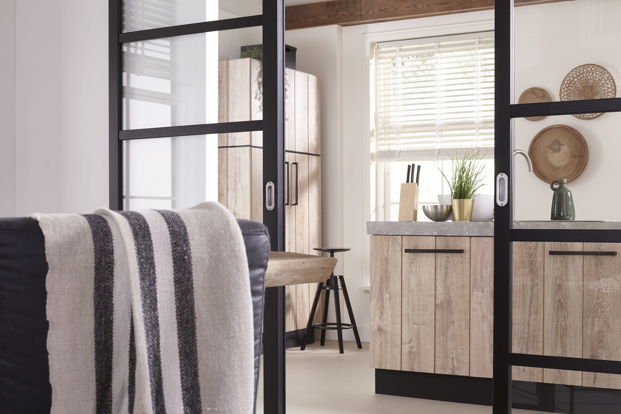 Landelijk wonen met glazen industriele barn deuren